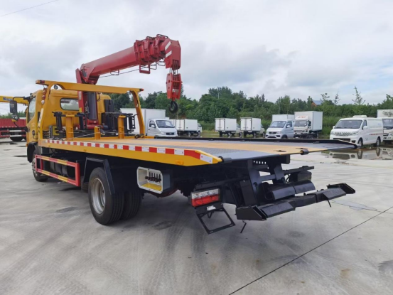 上裝配置:四噸上裝,四噸卷揚,21米鋼絲繩,3.5噸后托臂,底板為花紋一體板(可選沖壓板),板長5.5米,寬2.35米,雙側聯動操作,配**小車一套,L型抱胎架一對,備胎一個,LED工作照明燈一對,一個工具箱,四根捆綁帶,其余標配。